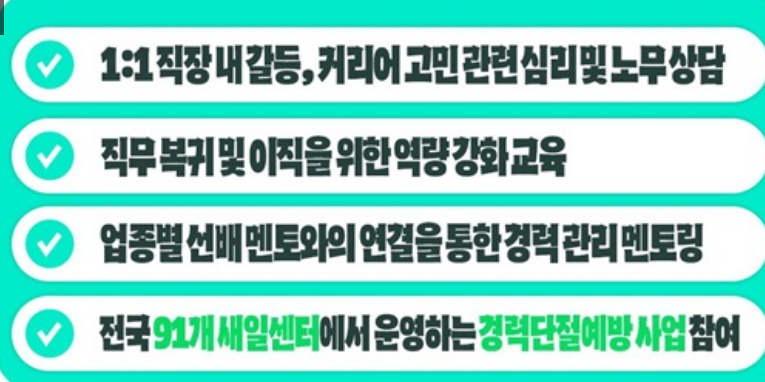 혼자 고민하지 마세요. 우리 곁에는 든든한 커리어 파트너인 새일센터가 있으니까요!