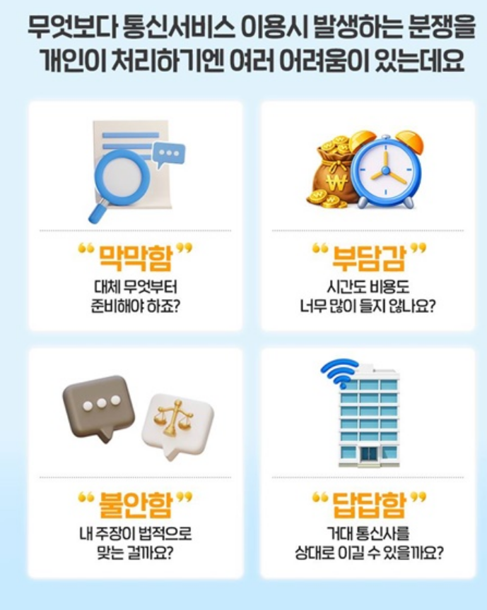 통신사를 상대로 분쟁을 겪게 되면 이용자는 네 가지 큰 어려움에 직면합니다.