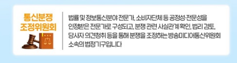 이런 어려움을 돕기 위해 운영되는 곳이 바로 통신분쟁조정위원회입니다. 이곳은 방송미디어통신위원회 소속 법정기구로, 법률 및 정보통신 전문가, 소비자단체 등 공신력 있는 전문가들이 사실관계를 확인하고 조정을 도와줍니다.