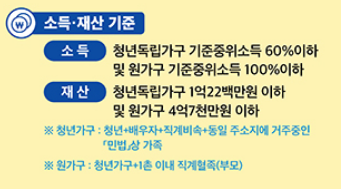 청년가구(본인): 기준 중위소득 60% 이하 & 자산 1억 2,200만 원 이하
