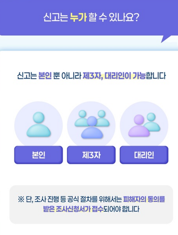 (단, 공식 조사를 위해서는 피해자의 동의가 필요합니다.)