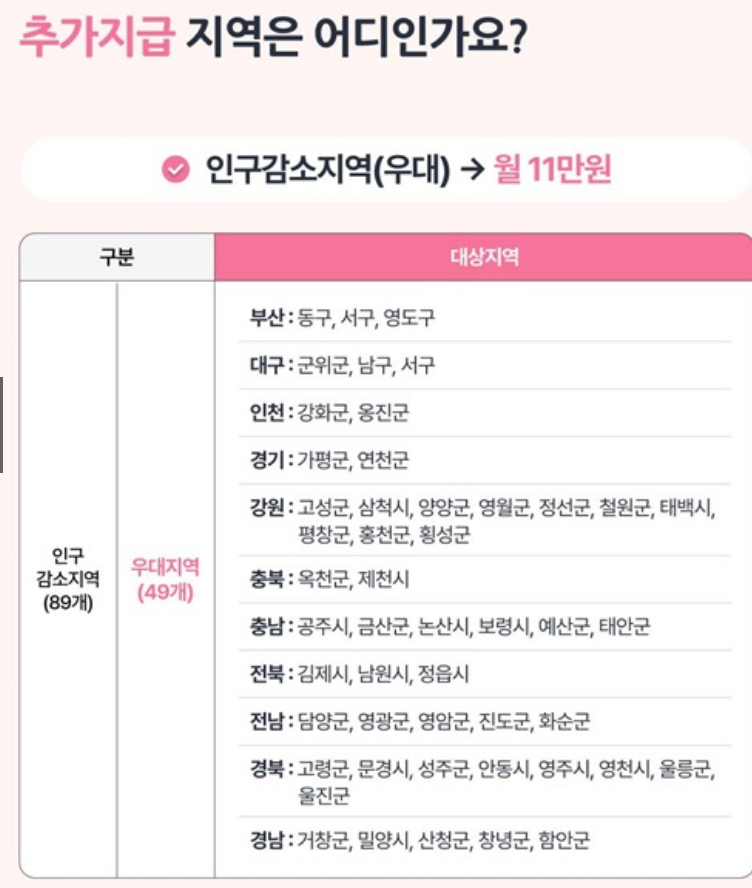 단순히 대상만 늘어나는 게 아니라, 살고 있는 지역에 따라 지원금이 더 많아진다고 합니다.