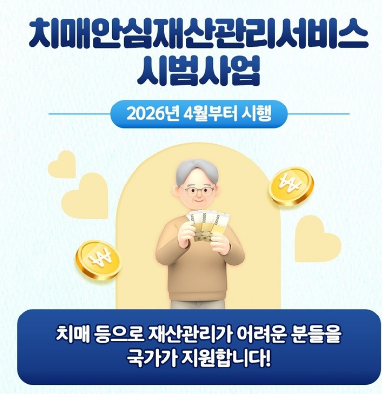 이런 고민을 해결하기 위해 보건복지부에서 2026년 4월부터 '치매안심재산관리서비스' 시범사업을 시작했습니다!