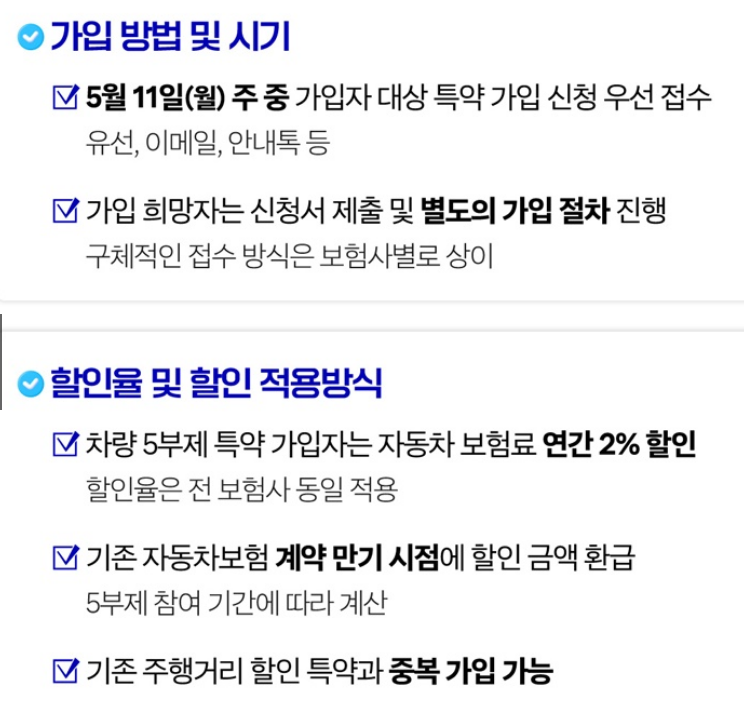 이번 5부제 특약은 2%라는 수치가 작아 보일 수 있지만, 주행거리 할인과 중복된다는 점에서 체감 혜택은 큽니다.
