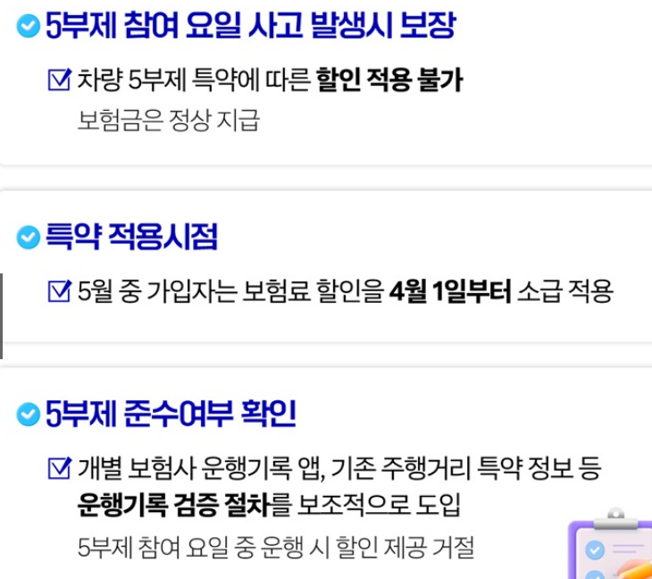 5부제 지정 요일에 운행 기록이 남으면 할인이 거절될 수 있으니 주의가 필요합니다.