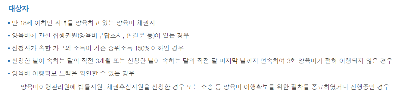 양육비 선지급제는 아무나 신청할 수 있는 것은 아니며, 세 가지 요건을 동시에 충족해야 합니다.