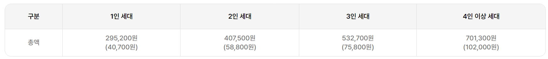 2025년 기준 에너지바우처 지원금액은 1인 가구는 최대 295,200원, 2인 가구는 407,500원, 3인 가구는 532,700원, 4인 이상 가구는 701,300원까지 지원됩니다. 이 중 하절기에는 전기요금에 한해 사용 가능하며, 나머지는 동절기에 사용됩니다.