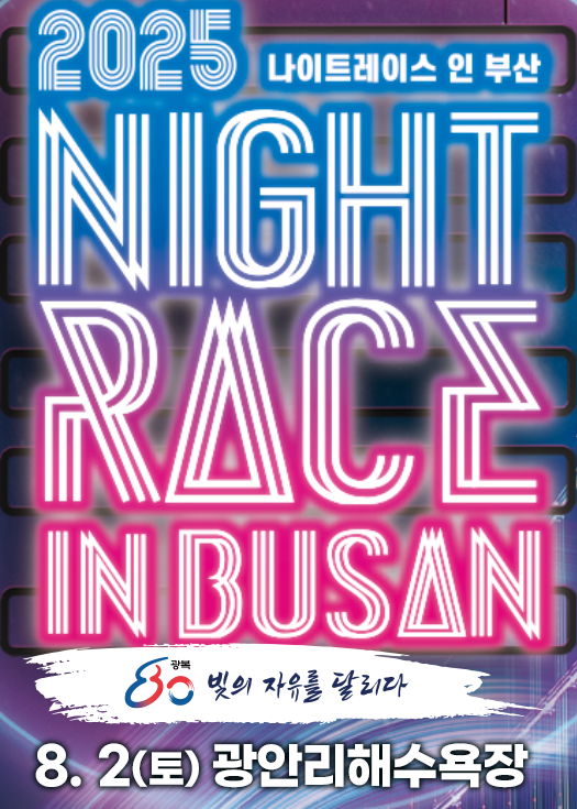 올해로 광복 80주년을 기념하여, 부산에서 열리는 야간 러닝 축제 ‘2025 나이트레이스 인 부산’이 8월 2일(토) 단 하루 동안 개최됩니다. 축제는 광안리 해수욕장에서 시작해 벡스코까지 이어지는 코스로 구성되어 있으며, 빛과 음악, 그리고 물결처럼 흐르는 도시의 밤을 가르는 8.15km의 한밤 질주를 선보입니다