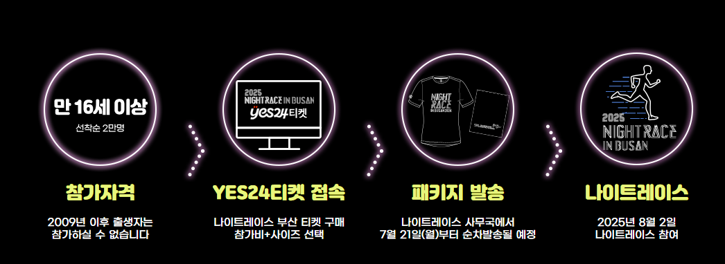 2025년 여름, 빛과 음악, 자유로운 달리기가 어우러진 나이트레이스 인 부산에서 특별한 추억을 만들어보세요. 광안대교 위에서 멋진 인생샷도 남기고, 시원한 바닷바람과 함께 도심 속 밤을 온전히 즐기는 경험이 기다리고 있습니다.