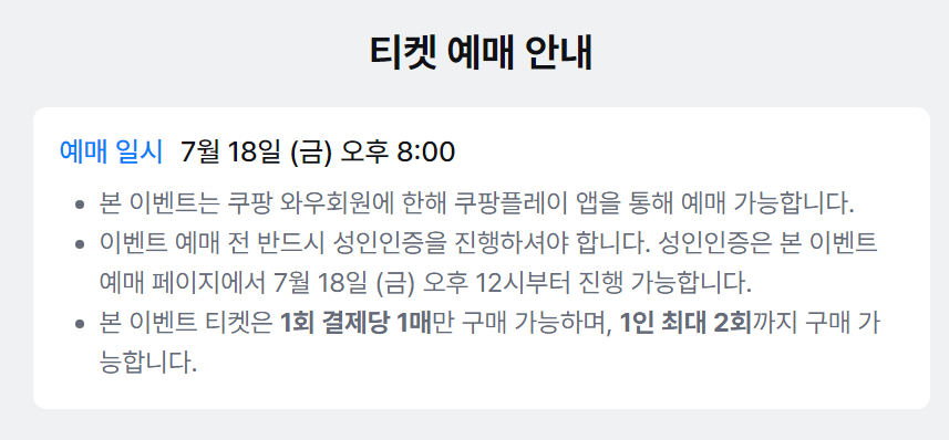 예매 오픈일: 2025년 7월 18일 금요일 저녁 8시