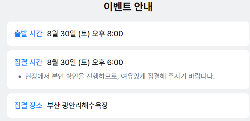 출발일시: 2025년 8월 30일 (토) 20:00
