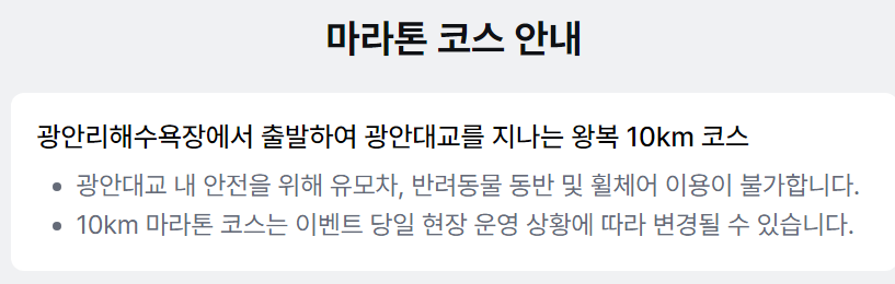 무려 광안대교 위를 달리는 특별한 코스이기 때문에, 평소엔 절대 경험할 수 없는 멋진 풍경과 함께 달릴 수 있다는 점이 정말 매력적이에요.