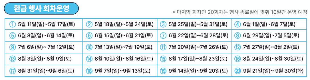 환급 행사 정보가 분산되어 있어 직접 찾아야 함