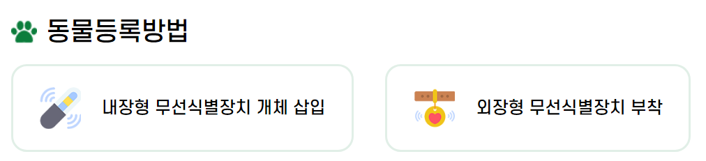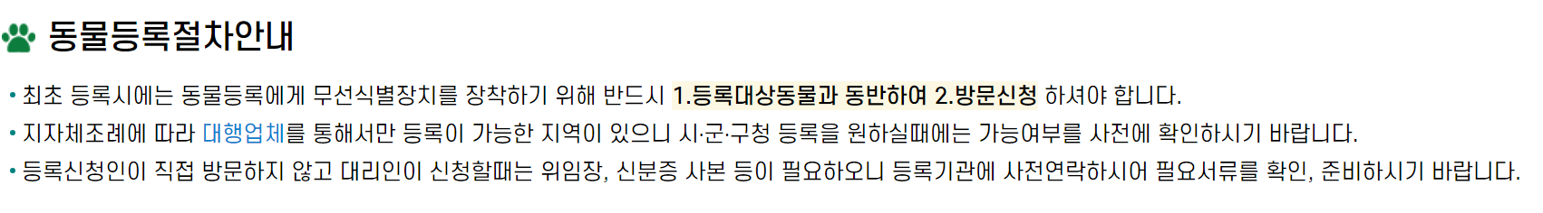등록은 국가동물보호정보시스템(animal.go.kr)에서 내 주변 동물등록 대행기관(대부분 동물병원)을 조회해 쉽게 신청할 수 있습니다.