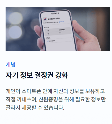 모바일 신분증은 NFC 또는 QR 코드 방식으로 신분을 확인할 수 있어, 실물처럼 보여주지 않아도 디지털 방식으로 빠르고 안전하게 인증할 수 있다는 장점이 있다.