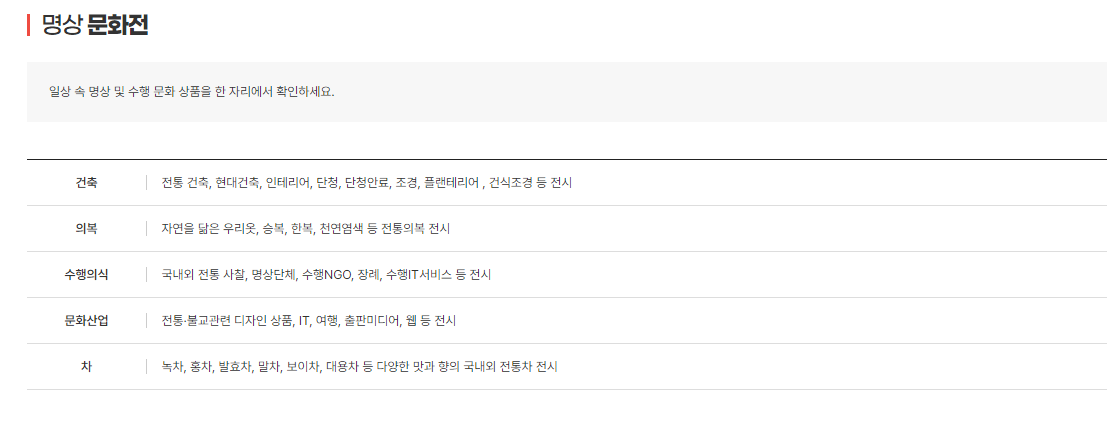 명상 문화전 & 명상 공예전: 전통 불교문화와 관련한 공예품 및 명상 관련 상품들이 전시되었습니다