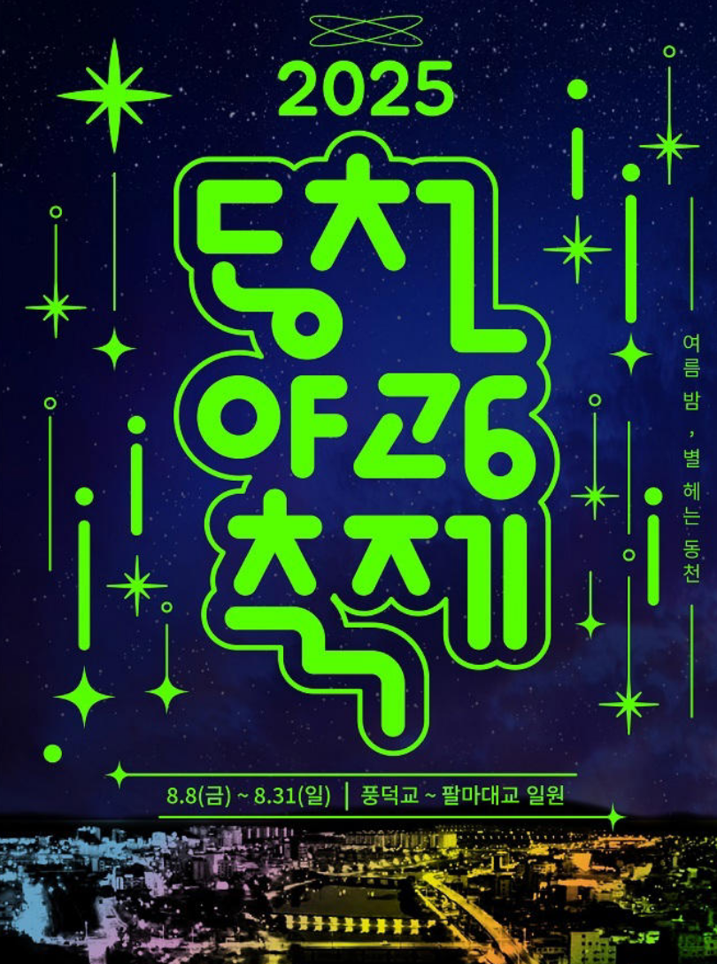 ‘별 헤는 동천’을 주제로 도심 하천을 환상적인 야경 속으로 변모시킵니다. 이번 축제는 단순한 관람형 행사가 아니라, 방문객이 머물고 즐기며 추억을 남길 수 있는 체류형 여름축제로 기획되었습니다.