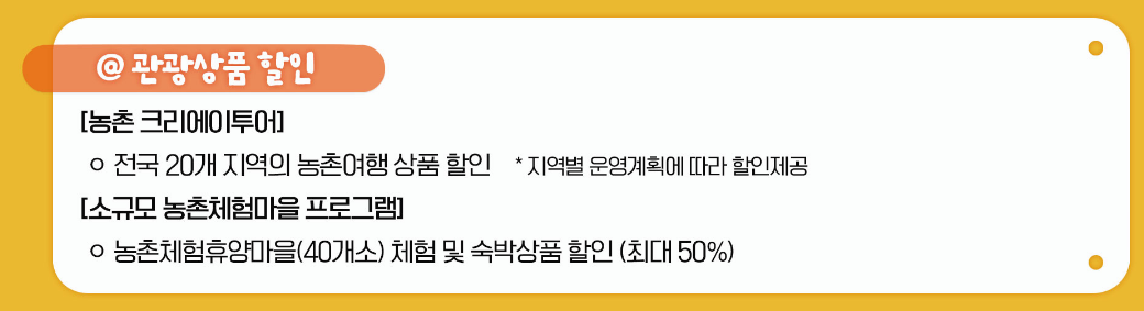첫 운영은 8월 11일부터 시작됩니다., 농촌관광 상품 할인과 다양한 이벤트를 통해 국민이 합리적인 가격으로 농촌관광을 즐길 수 있도록 지원합니다.