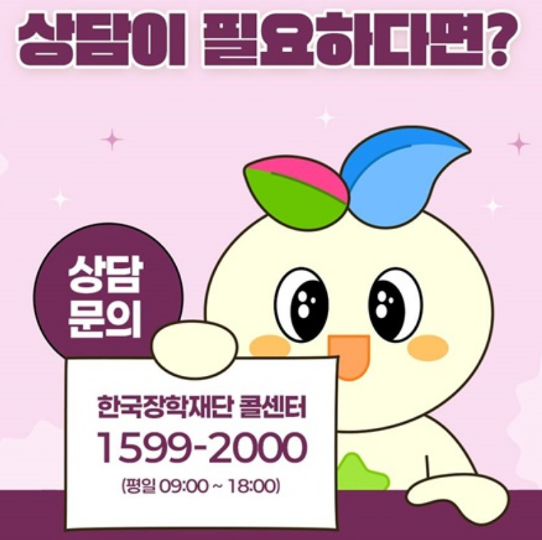 한국장학재단 콜센터 ☎ 1599-2000 (평일 09:00~18:00)