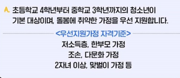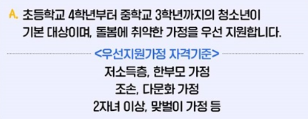 특히, 돌봄이 필요한 취약가정의 자녀들이 우선 지원 대상이 됩니다.