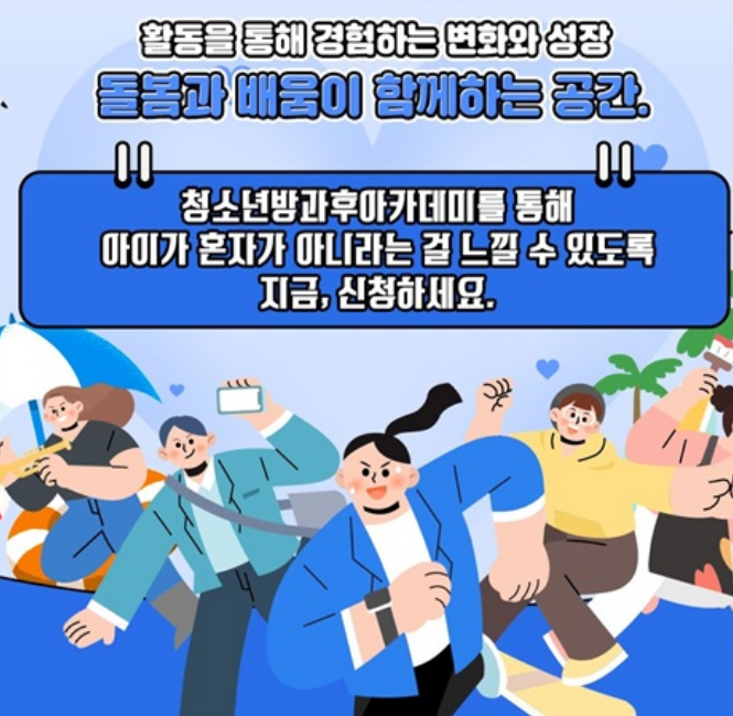 혹시 지금 돌봄의 공백으로 고민하고 있다면, 지금 바로 가까운 청소년방과후아카데미를 찾아보세요. 아이에게는 든든한 성장의 기회가, 부모에게는 믿음직한 지원이 되어줄 것입니다.