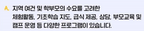 즉, 아이들이 방과 후 시간을 무의미하게 보내는 것이 아니라 스스로의 꿈을 찾고 사회적 역량을 키워나갈 수 있는 배움터라고 할 수 있습니다.