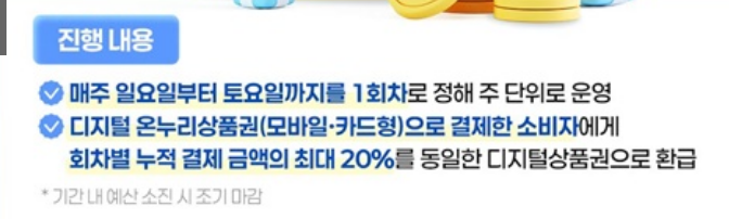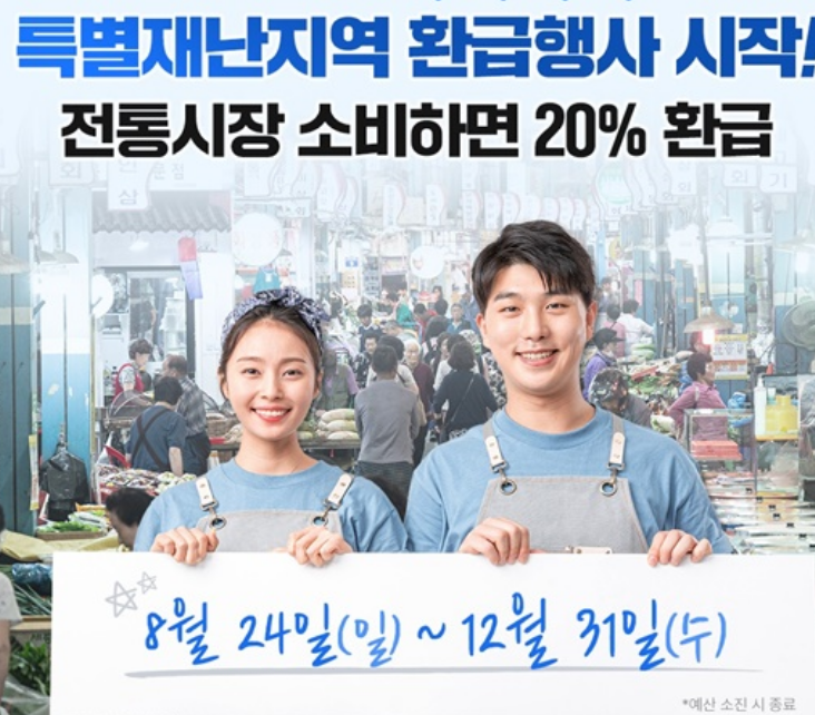 바로 “특별재난지역 전통시장 소비 시, 디지털 온누리상품권 결제 금액의 20%를 환급해주는 행사”입니다.