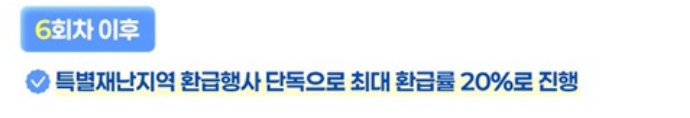 6회차 이후: 특별재난지역 환급행사 단독 운영으로, 환급률은 여전히 최대 20%.
