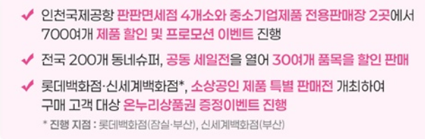 롯데백화점(잠실·부산), 신세계백화점(부산) : 소상공인 제품 특별 판매전 + 구매 고객 대상 온누리상품권 증정 이벤트