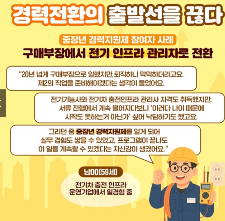 중장년 경력지원제는 단순한 일자리 연결을 넘어, ‘다시 시작할 수 있다’는 자신감을 심어줍니다.