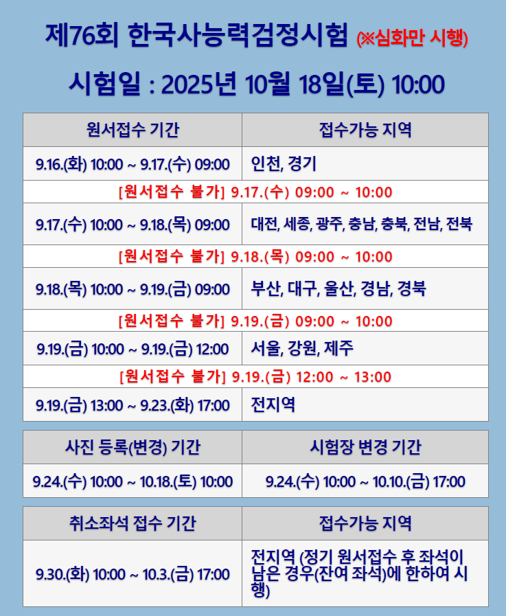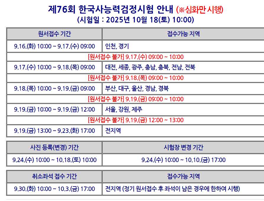 한능검은 매년 4회 정기적으로 시행됩니다. 시험은 주로 토요일 또는 일요일에 진행되며, 응시자격 제한이 없어 학생부터 직장인까지 누구나 도전할 수 있습니다.
