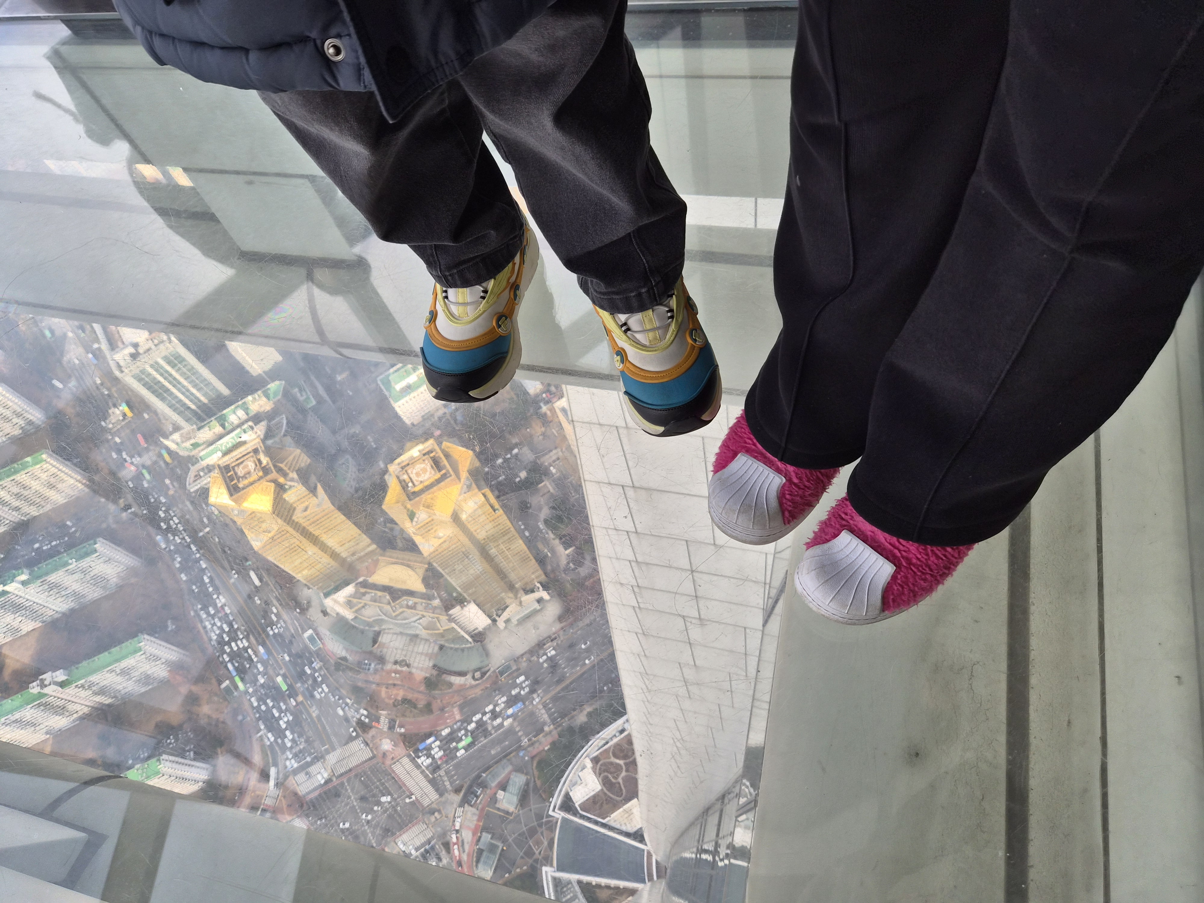 118층에는 바닥이 투명한 스카이데크가 마련되어 있어, 발 아래로 펼쳐진 도심을 그대로 볼 수 있습니다. 고소공포증이 있다면 다소 긴장될 수 있지만, 용기를 내서 올라서면 잊지 못할 사진을 남길 수 있습니다. 이 외에도 무료 포토존과 유료 포토존이 구분되어 운영되고 있으니, 원하는 콘셉트에 따라 선택하시면 됩니다.
